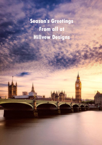 Westminster Bridge Front Personalised – London Christmas card of a London scene is printed onto a premium 300gsm solid board and finished in high-quality gloss and supplied with quality peel and seal envelopes. Personalised London Christmas cards from Hillview Designs.